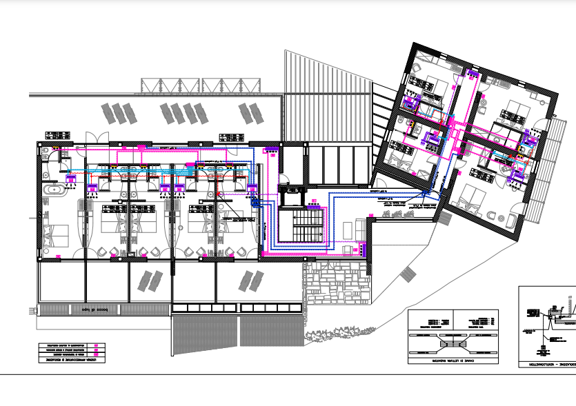 L’albergo-ristorante è articolato in tre distinti corpi di fabbrica: