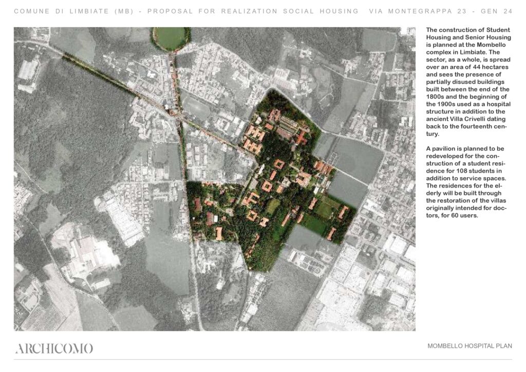 Intervento di recupero urbano del compendio noto come ex Manicomio di Mombello, situato in zona periferica del comune di Limbiate, in provincia di Monza e della Brianza. L'iniziativa prevede la riqualificazione di edifici costruiti tra la fine dell'800 e gli inizi del '900, in disuso da anni, da destinare a Student Housing e Senior Housing. La valorizzazione dell'area avverrà mediante un partenariato pubblico-privato (project financing) senza alienazione degli immobili.