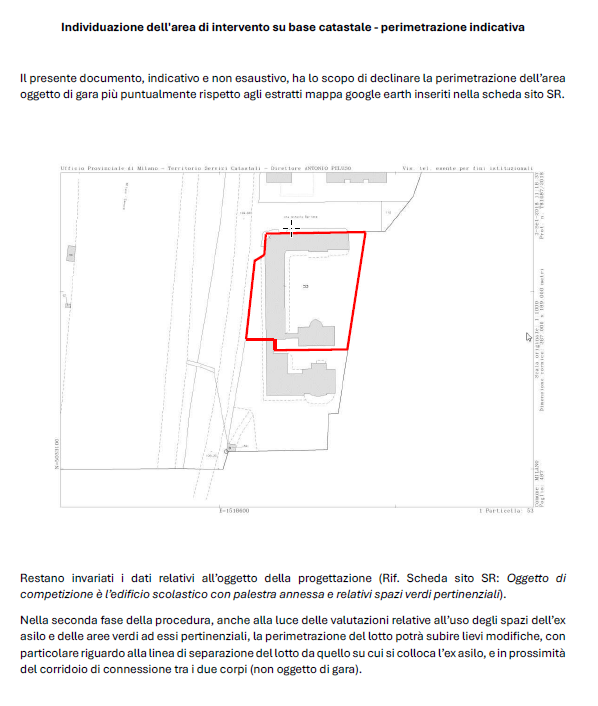 L’immobile è situato in zona periferica di Milano nella Regione Lombardia. L’area è situata specificatamente nel Nucleo d’Identità Locale (NIL) “Taliedo-Morsenchio-Q.re Forlanini”, Municipio 4, quadrante est della città.  Il quartiere è delimitato a est dalla Tangenziale A51, ad ovest dal tratto di linea ferroviaria, compreso tra la stazione di Milano Rogoredo a sud e la stazione di Milano Forlanini a nord. Ad ovest confina con via Zama, dalla quale si accede; a nord con via Antonio Berlese, dando accesso al parco pubblico di via Salomone (ad est) e ad un complesso di edifici residenziali privati costruiti recentemente. A sud costeggia una porzione edificata del lotto destinata a pubbliche finalità. L’edificio dista 700 metri da Piazza Ovidio, recentemente riqualificata, e da via Mecenate, in un contesto urbano variegato, con presenza di ambiti prettamente produttivi-terziari. Ad ovest della linea ferroviaria si trovano i fabbricati del Mercato Agroalimentare. L’area risulta inserita in un tessuto residenziale proteso verso nord-est, verso il Quartiere Forlanini, caratterizzato da un buon equilibrio tra spazi aperti e chiusi e da una discreta presenza di servizi e attività commerciali. La fermata “Repetti” della Linea 4 della metropolitana dista 1,5 km dall’immobile; l’aeroporto internazionale di Linate dista 4,5 km dalla zona.