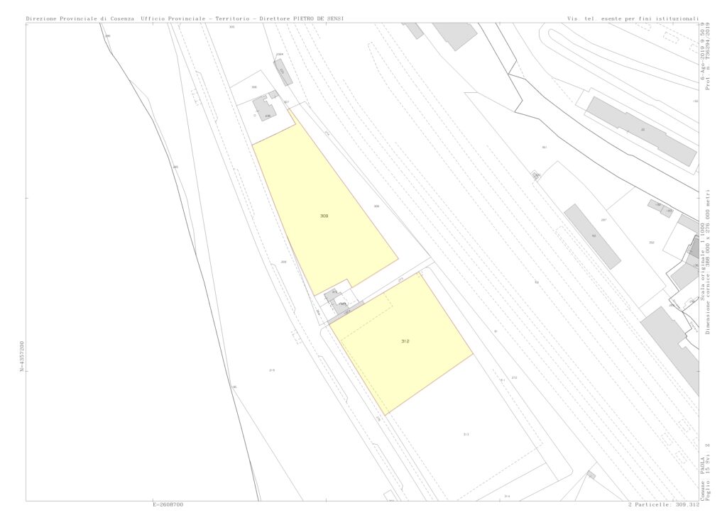 : Compendio costituito da due appezzamenti di terreno di forma pressoché rettangolare dei quali uno di m² 4.102,00 ed uno di m² 3.598,00 per un totale di m² 7.700,00. Il compendio è ubicato nella zona marina ad ovest del centro abitato del Comune di Paola (CS), interposta tra il rilevato ferroviario e la spiaggia; risulta accessibile sia dal Lungomare denominato San Francesco di Paola sia dalla Via dei Tirreni, una zona alquanto pregevole sotto l’aspetto turistico, paesaggistico e ambientale.