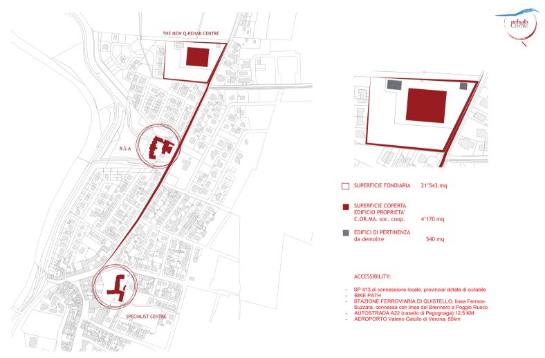 Il progetto prevede la creazione del nuovo centro specializzato “Q-Rehab”, ovvero la trasformazione di un vecchio edificio industriale - oggi utilizzato come grossista di frutta - in uno spazio innovativo che enfatizza la collaborazione, l'accessibilità e lo sviluppo di nuove competenze tecniche, nel territorio di Quistello e dintorni. In particolare è prevista la realizzazione di un centro fisioterapico polivalente con alloggio e spazio educativo per operatori.
